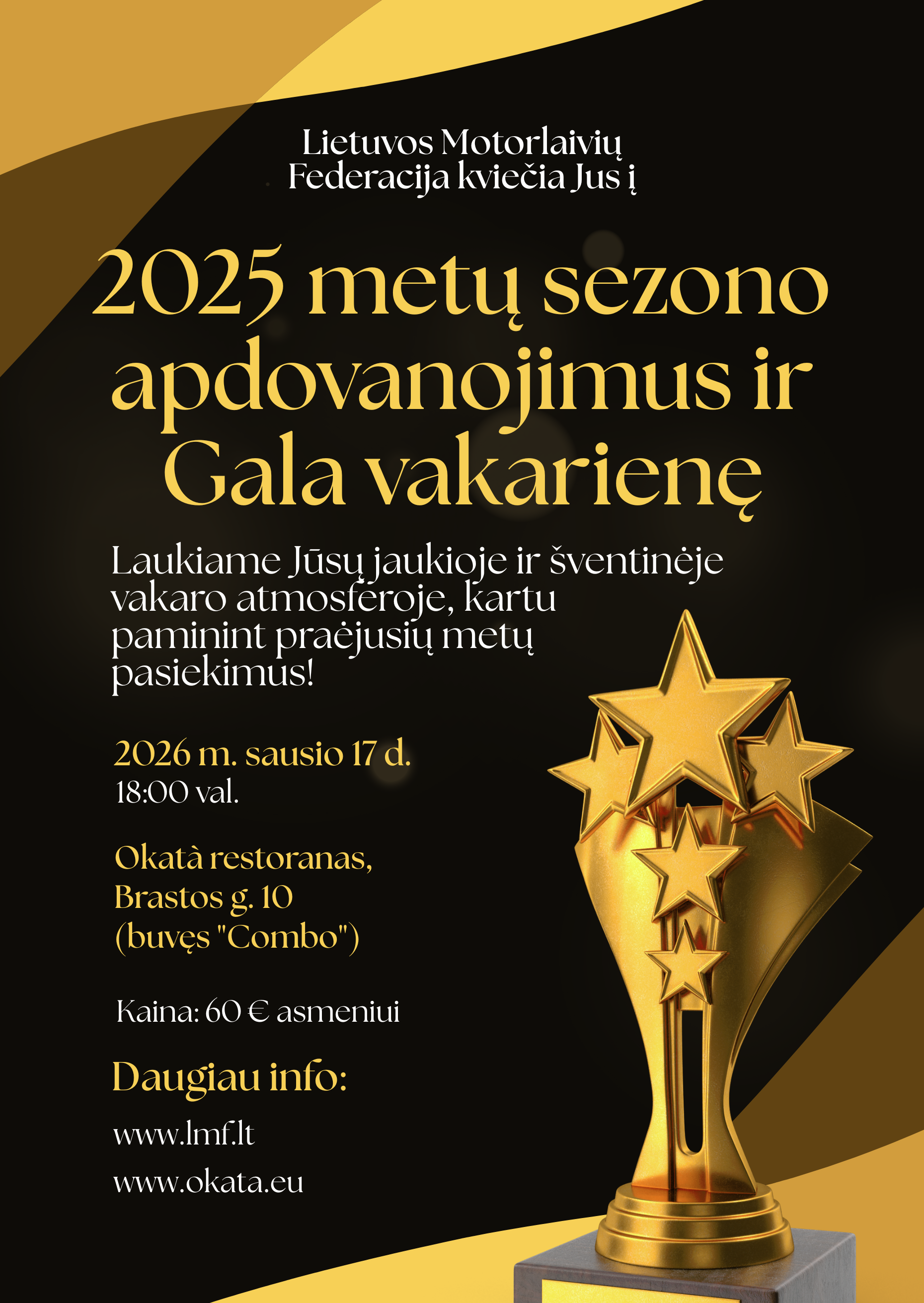 Lietuvos Motorlaivių Federacija tęsia gražią tradiciją ir šių metų pradžioje kviečia sportininkus, trenerius, komandas, partnerius bei visus vandens sporto bendruomenės narius į iškilmingą 2025 metų sezono apdovanojimų ir Gala vakarienės renginį. Tai svarbiausia metų šventė, kurioje pagerbiami ryškiausi sportininkų pasiekimai, prisimenamos įsimintiniausios sezono akimirkos ir kartu kuriamas bendruomenės ryšys.